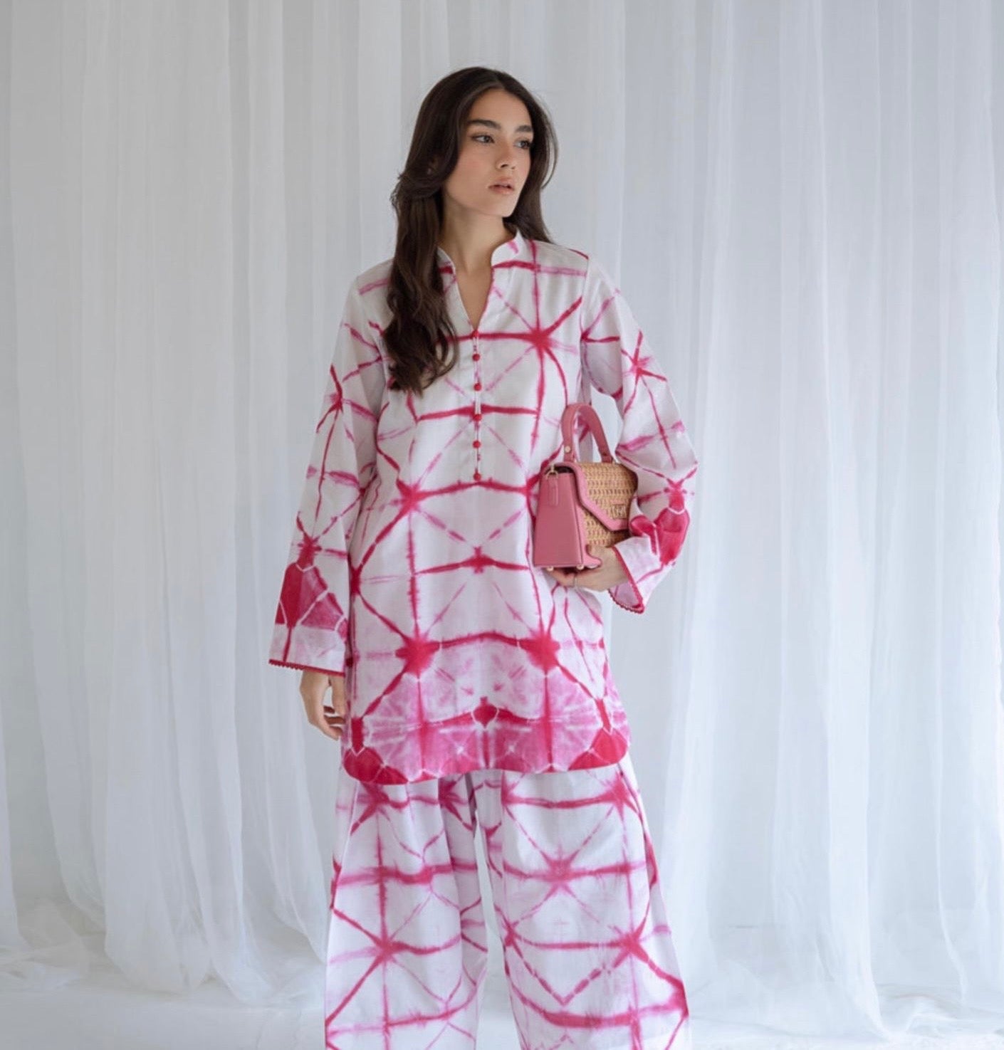 Turn heads in effortless style with this pink tie-dye coord set. Featuring a soft, breathable fabric with a dreamy swirl of pastel pink hues, this matching top and bottom set is perfect for lounging, running errands, or making a casual statement.