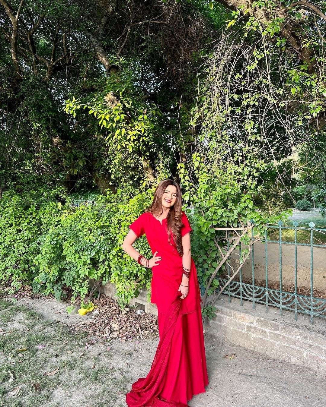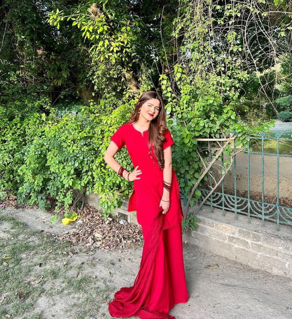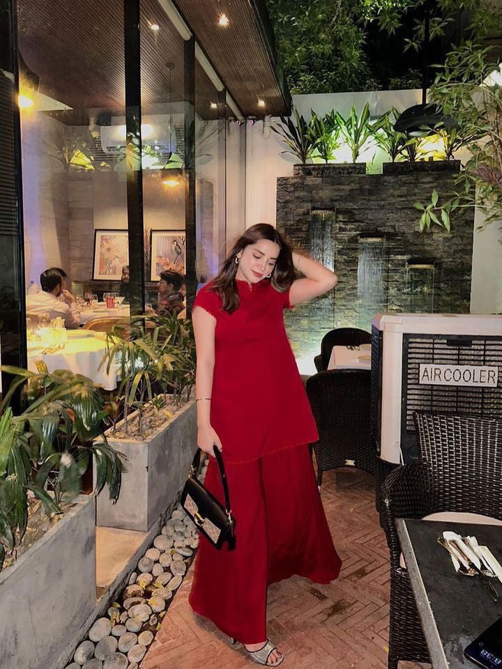This ensemble features a graceful malayi crepe frock, paired with flared malayi crepe palazzo pants for a breezy, sophisticated look. The set is completed with a matching chiffon dupatta, adding a touch of timeless elegance.